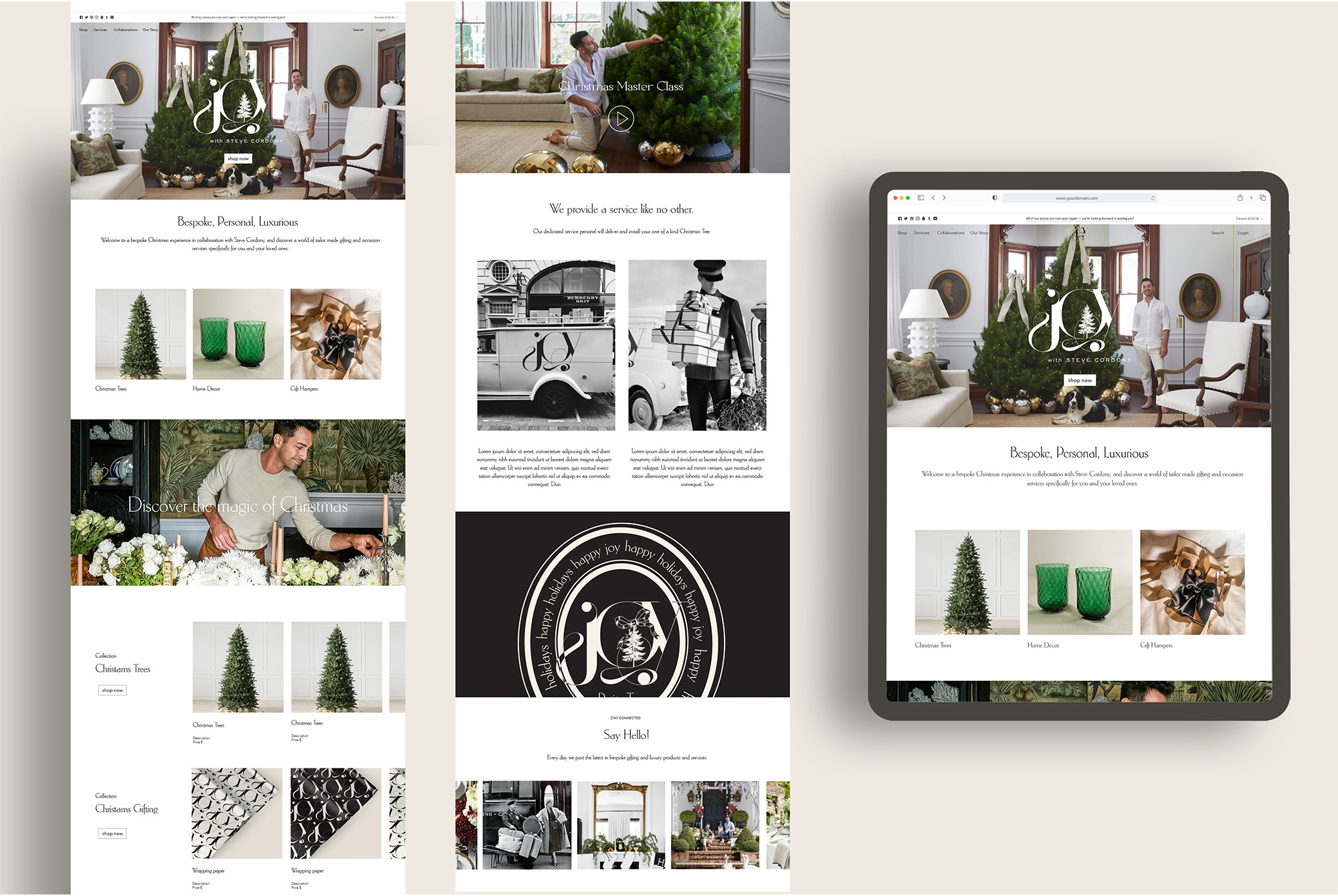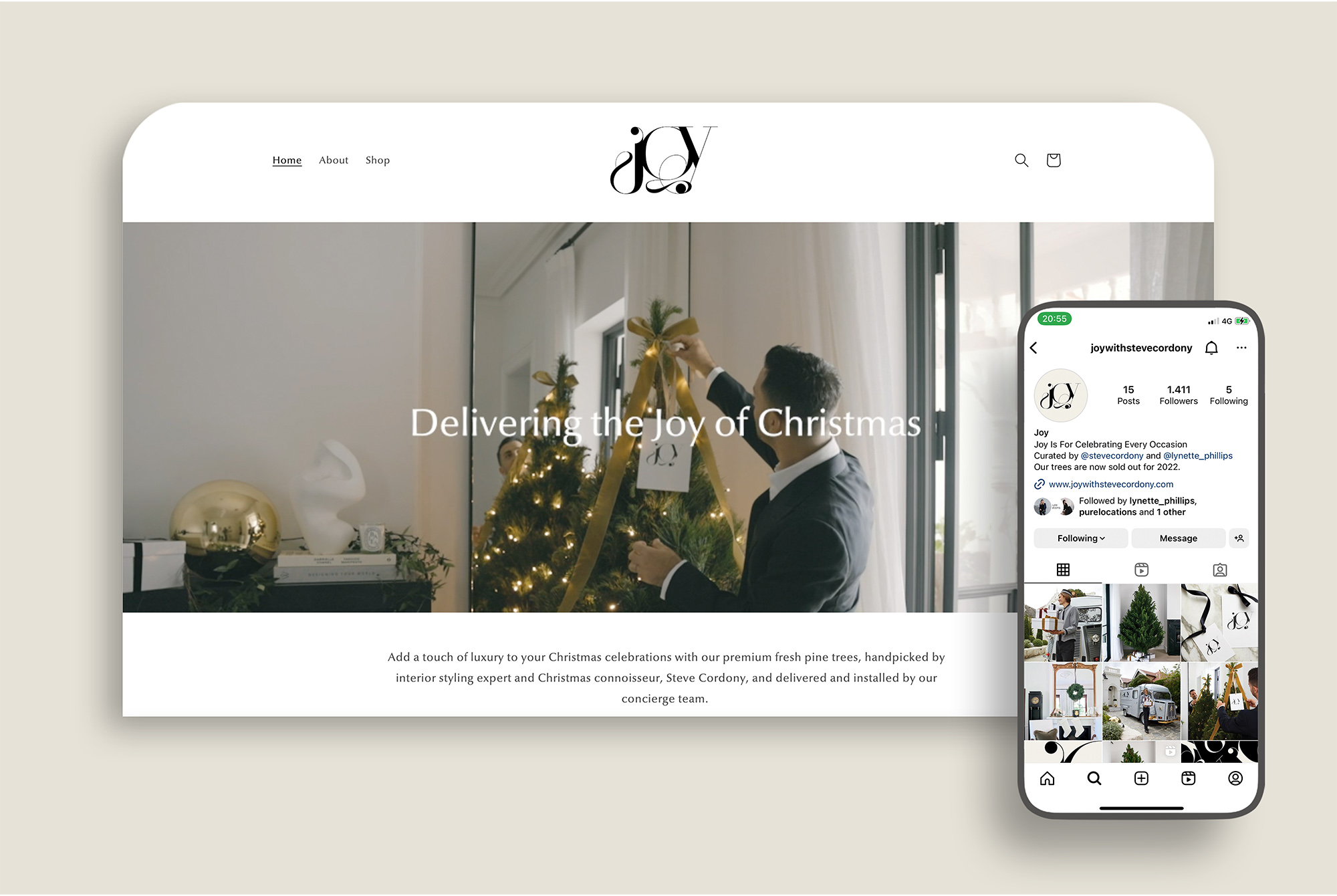 A brand identity for JOY, a boutique concierge service for an exquisite holiday experience catering to the stylish and sophisticated. Launched for Christmas 2022 and presented through an online e-commerce platform and captivating Instagram account, Joy brings opulence and convenience together, ensuring every detail is meticulously tailored to the preferences of the client.