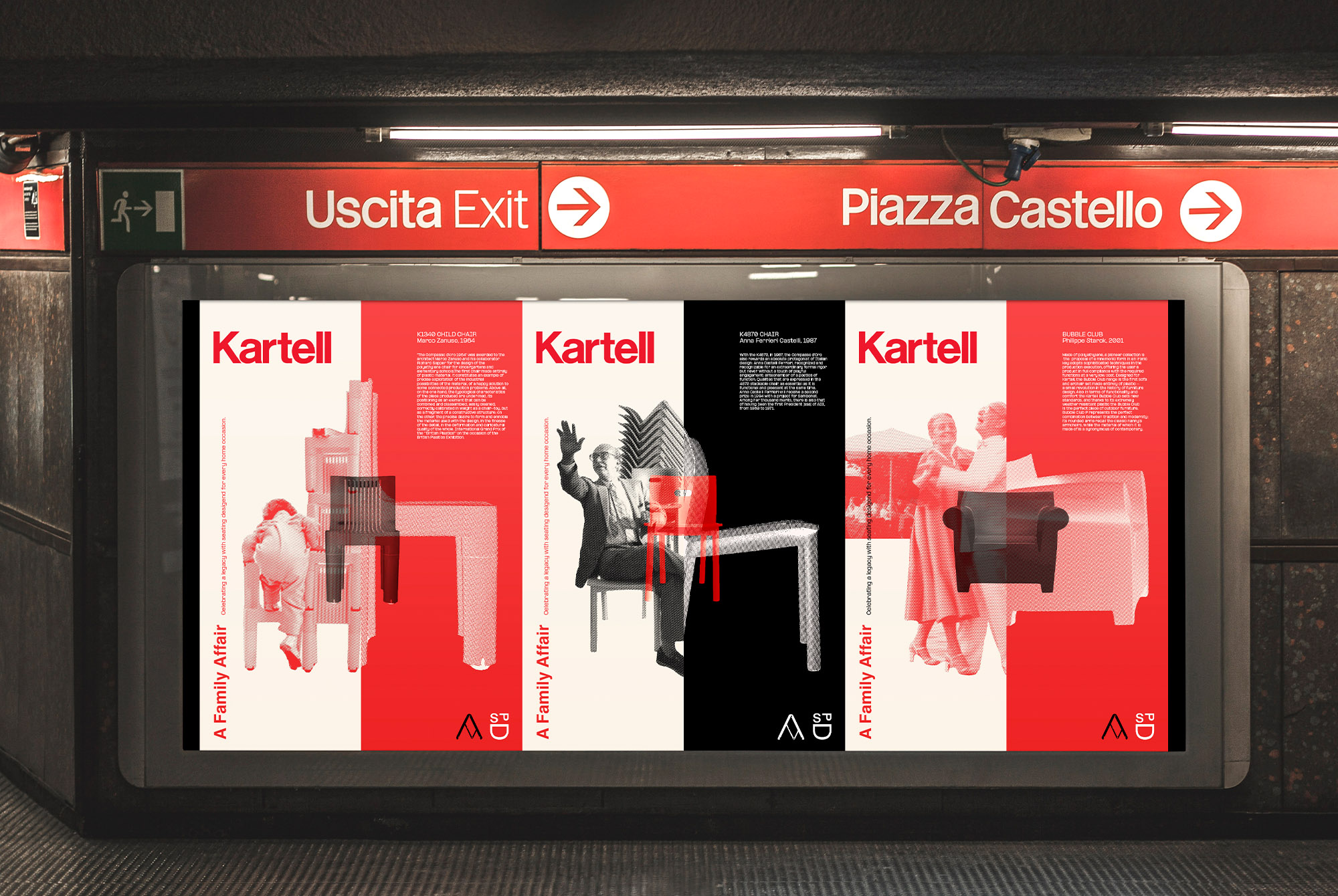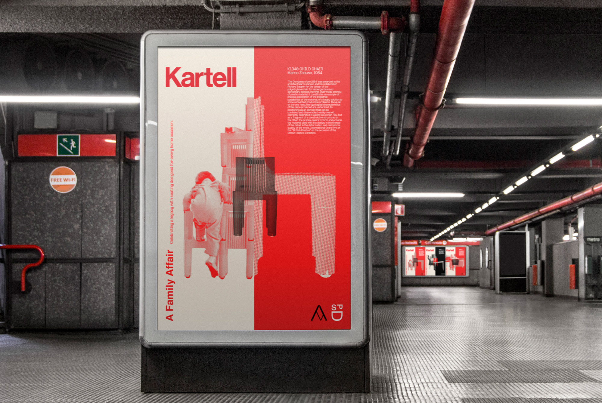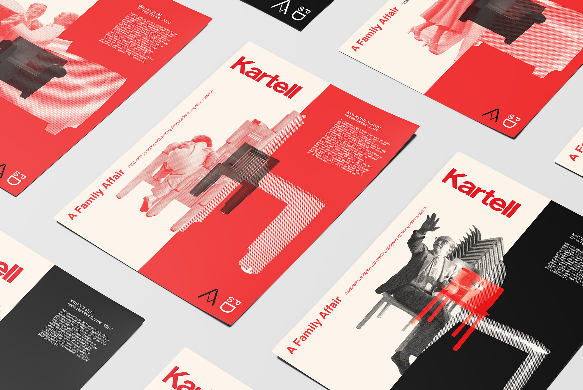 The visual language pays homage to the style of Kartell and the traditions of Swiss and Italian design with minimalism and elegance. Bold and graphic halftone collage looks to create a storytelling between the featured product and its relationship to function depicted through Kartell heritage.