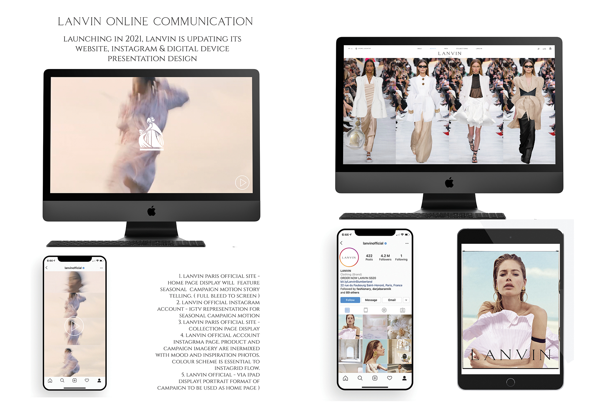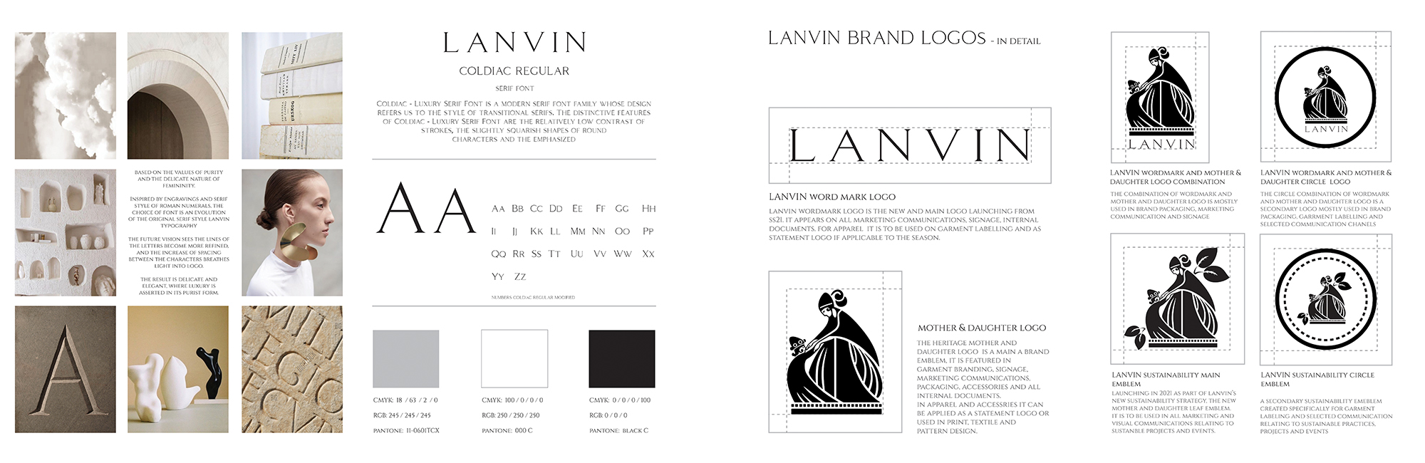 The choice of using a Coldiac as the new typeface for Lanvin looks at the new brand values of Purity, Emotion and Femininity. The conscious choice of kerning breathes fresh air to reflect purity, the refined lines of Coldiac Serif reflect femininity and emotion while the vertical scale reduction creates balance and harmony synonymous with nature