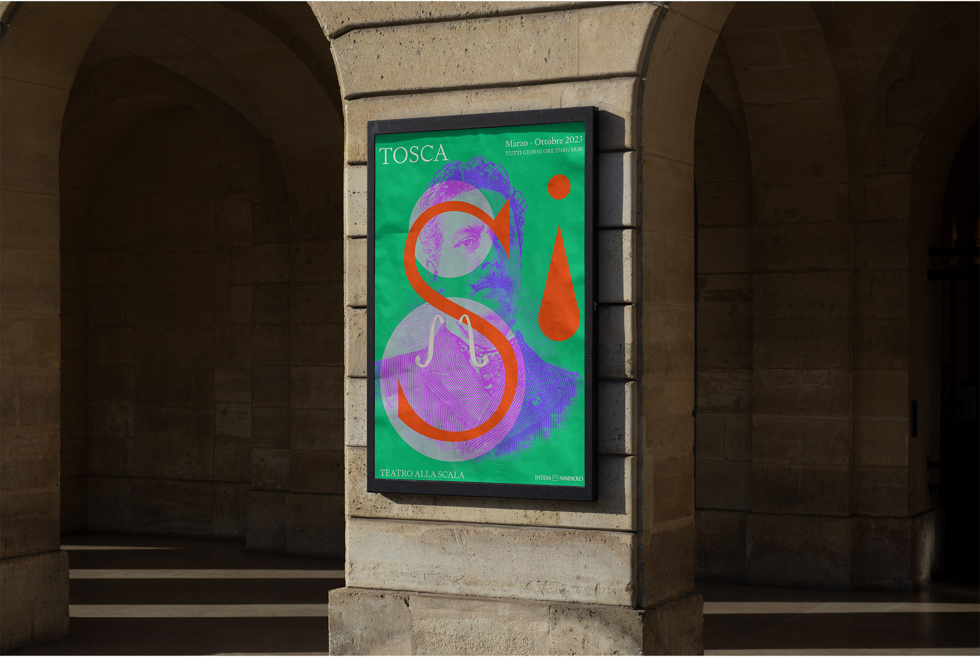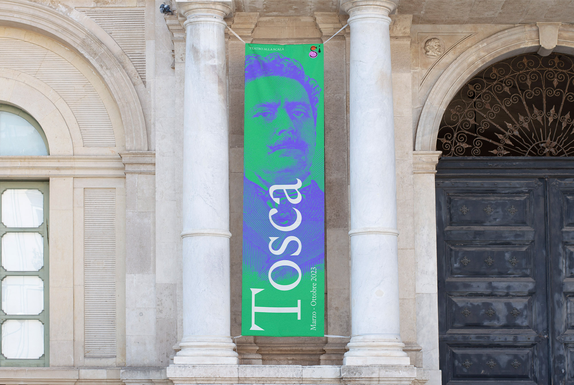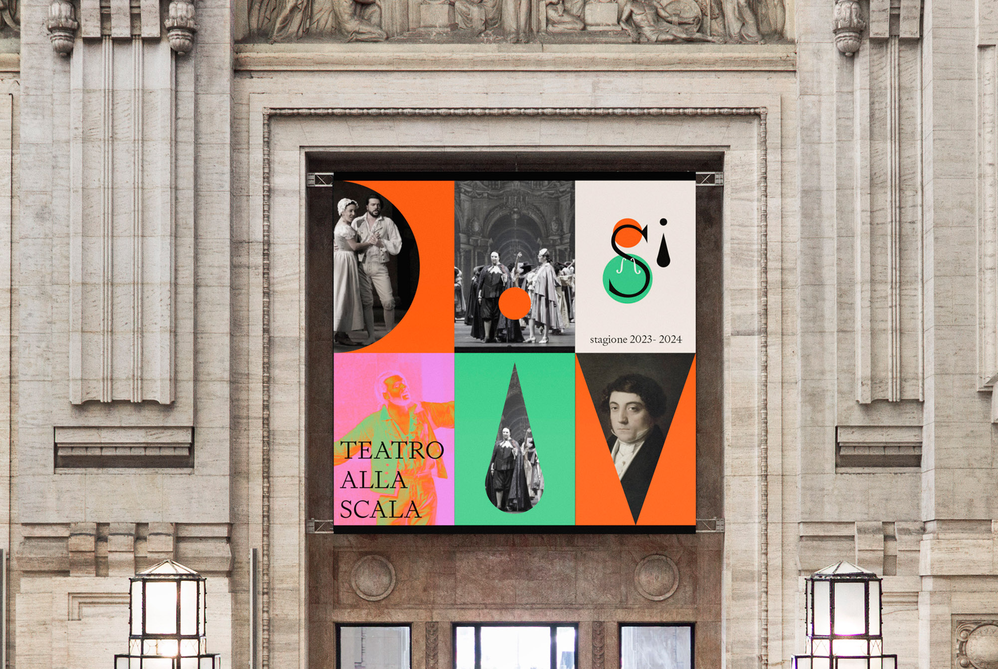 At the heart of this concept lies a logo in the shape of a human tear, derived from the theater’s floor plan. This unique design element serves as a direct link to the visceral experience of attending a la Scala production. In combination with the the letter S, the teardrop element is completed with a dot to create a exclamation element. Together with the latter S it reads as the Italian word ‘Si’ (Yes) thus becoming a suggestive idea signalling to saying Yes to attending the theatre. The final outcome symbolises the profound emotions and transformative power that the theatre brings to its audience.
